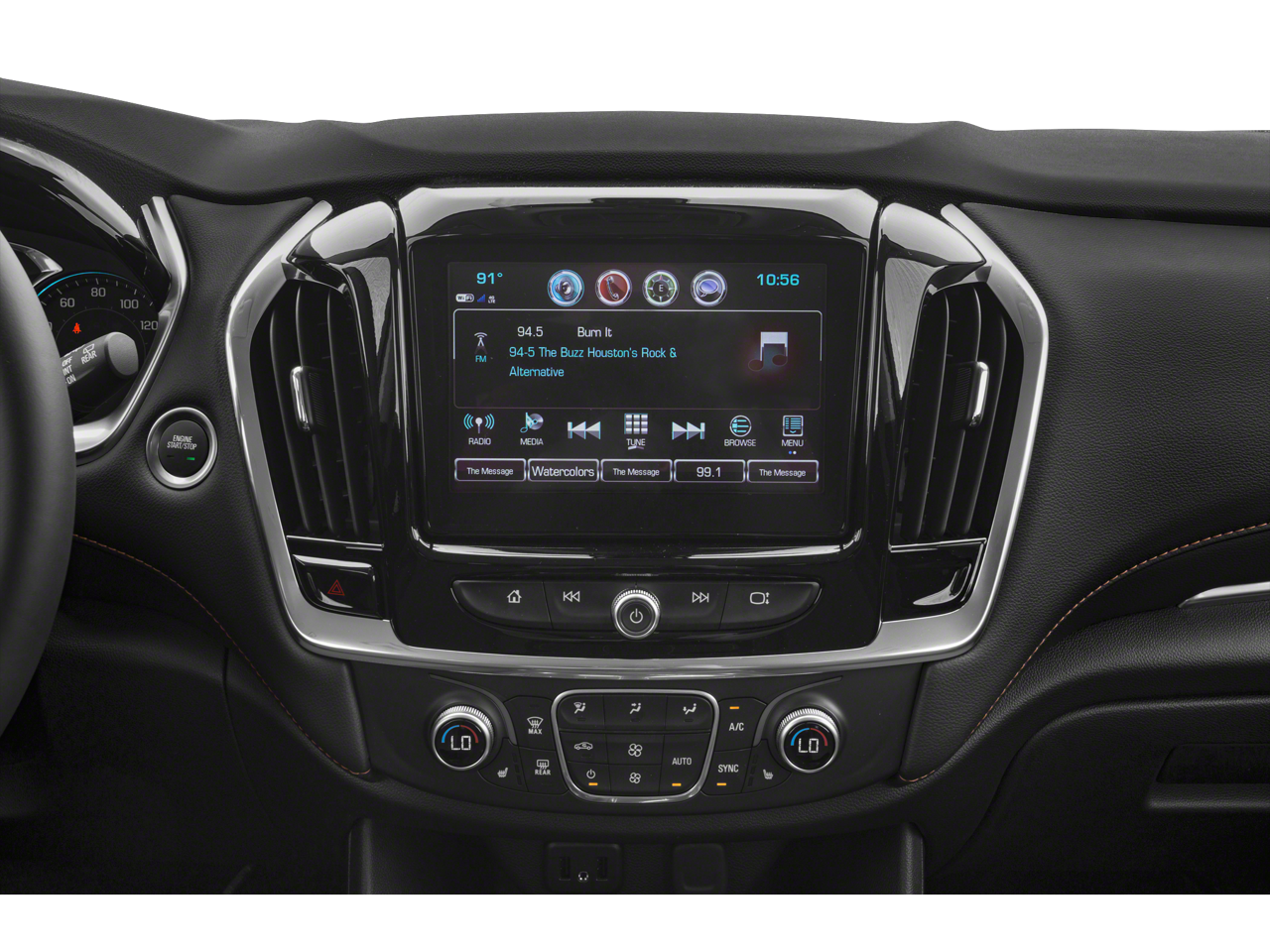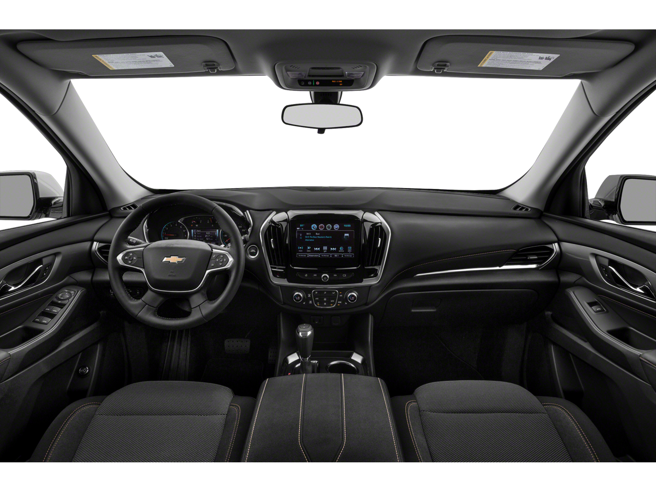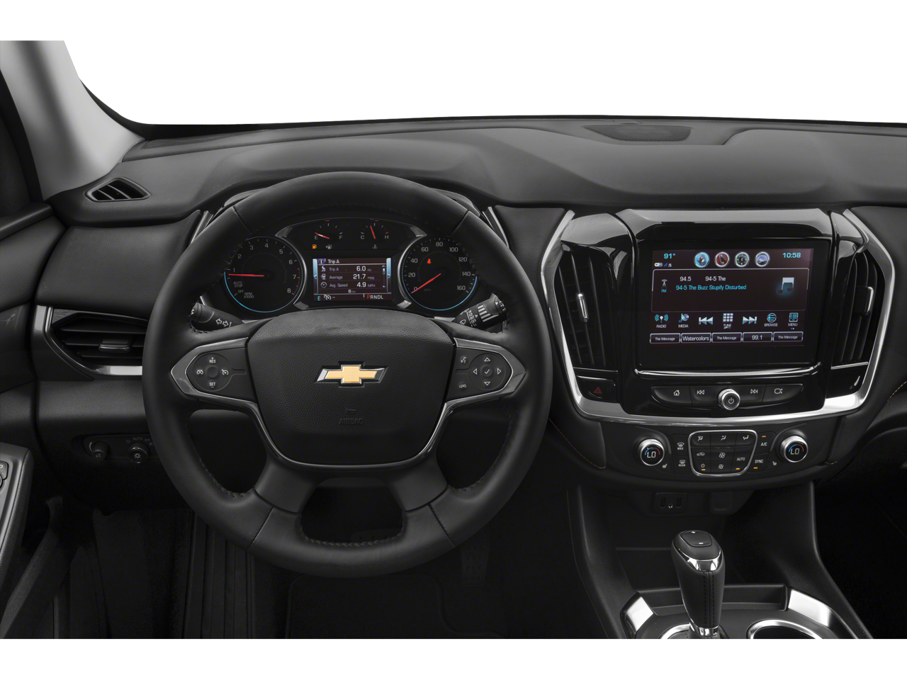 Equipped with Convenience & Driver Confidence Package (4.2" Multi-Color Enhanced Driver Instrument Display, Heated Driver & Front Passenger Seats, Lane Change Alert w/Side Blind Zone Alert, Radio: Chevrolet Infotainment 3 Plus System, Rear Cross Traffic Alert, Rear Park Assist w/Audible Warning, Rear Power Liftgate, Remote Start, SiriusXM w/360L, and Universal Home Remote), Front License Plate Bracket Mounting Package, Preferred Equipment Group 1LT, 3.49 Axle Ratio, 3rd row seats: split-bench, 4-Wheel Disc Brakes, 6 Speakers, 7-Passenger Seating (2-2-3 Seating Configuration), ABS brakes, Air Conditioning, Alloy wheels, AM/FM radio: SiriusXM, Apple CarPlay/Android Auto, Automatic temperature control, Brake assist, Bumpers: body-color, Compass, Delay-off headlights, Driver door bin, Driver vanity mirror, Dual front impact airbags, Dual front side impact airbags, Electronic Stability Control, Emergency communication system: OnStar and Chevrolet connected services capable, Four wheel independent suspension, Front anti-roll bar, Front Bucket Seats, Front Center Armrest, Front dual zone A/C, Front fog lights, Front reading lights, Fully automatic headlights, Heated door mirrors, High-Intensity Discharge Headlights, Illuminated entry, Leather steering wheel, Low tire pressure warning, Occupant sensing airbag, Outside temperature display, Overhead airbag, Overhead console, Panic alarm, Passenger door bin, Passenger vanity mirror, Power door mirrors, Power driver seat, Power steering, Power windows, Premium Cloth Seat Trim, Radio data system, Radio: Chevrolet Infotainment System AM/FM Stereo, Rear air conditioning, Rear anti-roll bar, Rear reading lights, Rear window defroster, Rear window wiper, Remote keyless entry, Roof rack: rails only, Security system, SiriusXM Radio, Speed control, Speed-sensing steering, Spoiler, Steering wheel mounted audio controls, Tachometer, Telescoping steering wheel, Tilt steering wheel, Traction control, Trip computer, Turn signal indicator mirrors, Variably intermittent wipers, Voltmeter, and Wheels: 18" Bright Silver Painted Aluminum.